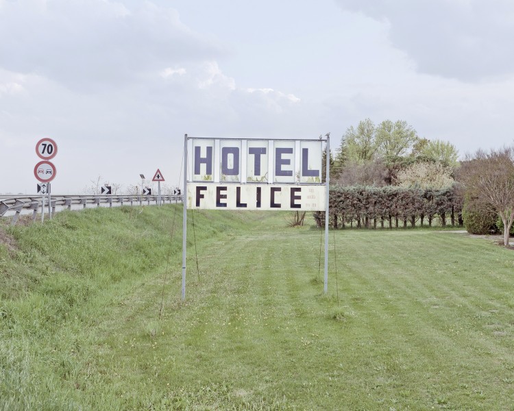 In a series entitled "Dal Mare (From The Sea)", Lorenzo Mini focuses on objects and garbage found on the Cesenatico beach. Here the absence is explained by the loss of humanity, a mirror of an increasingly hedonistic mentality. We, therefore, find another reference to modernity and the emergence of the consumer civilization that interferes with environmental balances. This absence of humanity also translates into the growing anonymity of the landscapes. The issue is well addressed in the work dedicated to the land crossed by the Strada Romea, in which the author is able to trigger visual short circuits. He places himself in a forgotten elsewhere, almost insignificant, vernacular, at times irreverent, and subtly anthropological, and he witnesses his inhabitants, his countrymen. In doing so, the human manifests himself precisely in the absence and invites us to rethink the fact of being in the world. This posture represents an almost philosophical attitude, which in Italian photography, particularly in this region of Emilia Romagna, has found illustrious predecessors in the past. Luigi Ghirri above all. A sort of remedy for widespread nihilism well-rooted here thanks to the planning of resignation and that pushes towards the problematization of the obvious.