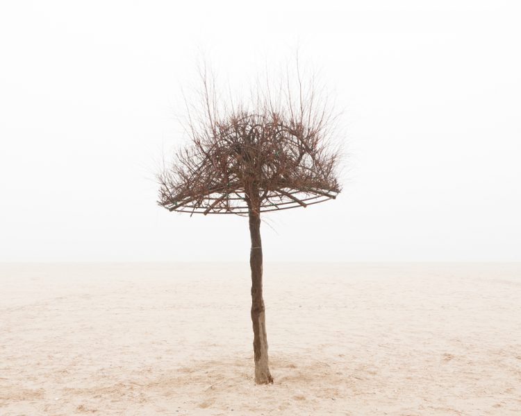 This posture, in the Altrove ('Elsewhere') series, corresponds to the absence of references and is manifested visually in the fog that hides the horizon, giving the objects an almost totemic aura. The author reminds the scene from the film 'Amarcord' (1973) when the character Titta (director's alter ego) get lost in a thick fog that has made everything disappear and suddenly he starts wondering if the afterlife will look like the same: free from people, trees, birds, and wine. Titta appears lost until a friend reminds him that the house is right behind him. Finally, the child arrives and definitively breaks the spell, and boldly leaves to go to school. The one portrayed by Mini is an equally contemplative, but less hopeful, vision broken by the whistle of the so-called "fischione", better known as a foghorn. The reference to modernity and its unsolved dramas is a recurring motif in Mini's work. Here the mechanical sound of the loudspeaker seems to replace the chant of the sirens, guides in an afterlife of neoplatonic reminiscence. The sound, however, remains imperceptible in the photo as if to highlight an insurmountable limit of the medium.