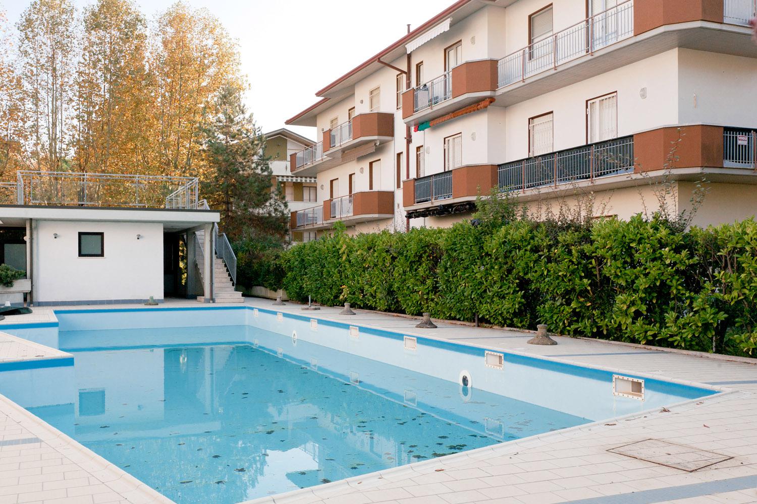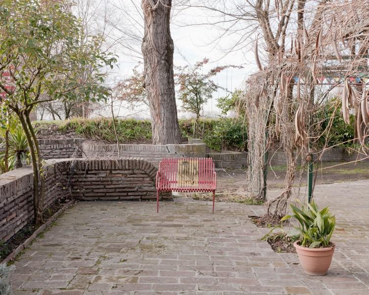 Lorenzo Mini's most recent work is titled There is no one here. Perhaps it is what more than other series expresses us unequivocally the absence, described in detail, almost palpable. Benches, squares, parking lots, streets, swimming pools, paths, courtyards, slides, sidewalks, houses, gardens, we are facing an empty glossary. An urban plot in which a deafening silence reigns. Yet looking closely, on the margins of all this, life sustains itself. Maritime pines, laurel hedges, oleanders, ivy, and many other plant species seem to mock human reasons. Of their foolish progress towards oblivion, of their vain sinking into absence.