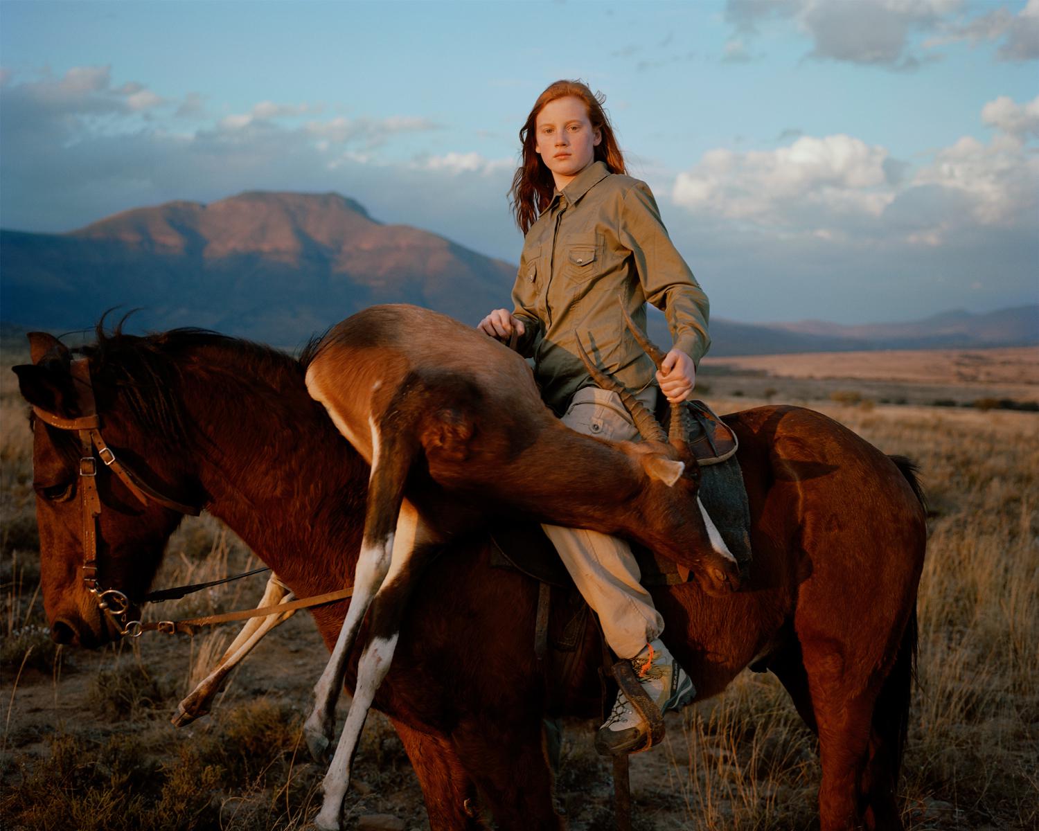 David Chancellor’s work focuses on the conflicting aspects of conservation in Africa, a continent still home to a diverse and spectacular fauna. His photographs raise a level of complexity in their interpretation that matches the forces at play. Poverty and poaching, trophies and paid hunting, tourism and preservation, human pressure, enclosures and natural habitats. The solution? There is no solution. Coexistence with animal species lies in the continuous search for balance—or rather, in defining it as a compromise. This "tightrope walker" perspective on conservation policies is reflected in measures that are often debatable. The portrait of twelve-year-old hunter Josie from Alabama, riding horseback in the guise of a contemporary Diana while holding the antlers of her prey, is emblematic. Paid hunting, much like a pay-per-view service (adapted to a "pay and shoot" model), allows the user to "aim" at what’s necessary, while enabling the broadcaster to earn money that supports conservation needs, expenses, programs, and equipment, as well as benefiting local populations.