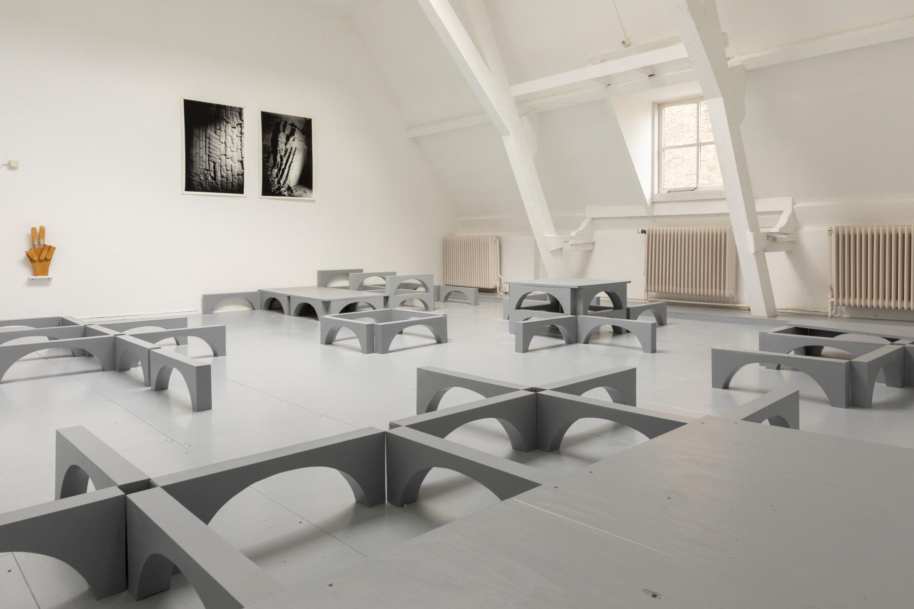 As I already stated before, we wanted the exhibition to unfold throughout the entire building and thereby also exhibit the building itself. For my artistic practice, it was a great challenge and a wonderful experience to think of a series of consecutive spaces. That is also why each installation has a title that specifies it as a specific room in a building: Room without residents (1888-2020), Room with floors (1412-2020), Room with doors (1888-2020), Room with windows (1888-2020), Room without ceiling (1888-1975, 2020).