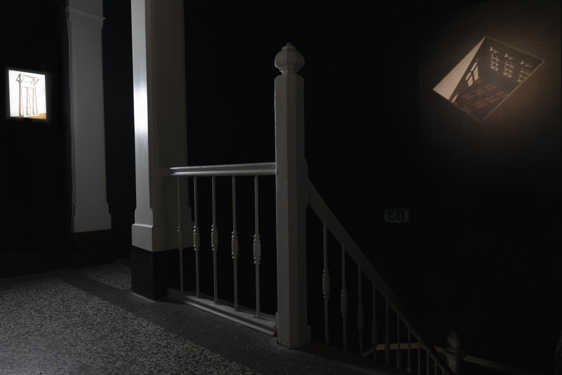 In similar ways as we now take measures to prevent the spreading of the COVID-19 virus, architects in the 19th-century came up with solutions to prevent the spreading of epidemical diseases in the overcrowded city centres. The fear of these diseases led to the creation of the large rectangular windows in the building in which FOTODOK and Casco Art Institute are housed. These windows were designed to provide as much light as possible (to kill bacteria) and guaranteed a constant circulation of fresh air throughout the classrooms. Facts like this led to the creation of the installation Room with windows (1888-2020). I find it very fascinating that these seeing these windows and the light falling through is almost an aesthetic experience in itself, but I differs quite from their original function when they were designed. These were times where there was an almost obsessive strive to hygiene and buildings had to meet many government requirements. In the exhibition, Room with windows is a darkened staircase and corridor wherein the windows are literally the light in the darkness of the space, guiding the visitors through this darkness.
