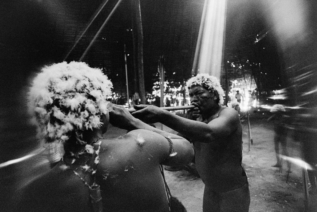 The shaman and tuxaua John blows the hallucinogen yãkoana. Catrimani, Roraima, 1974. Photo © Claudia Andujar