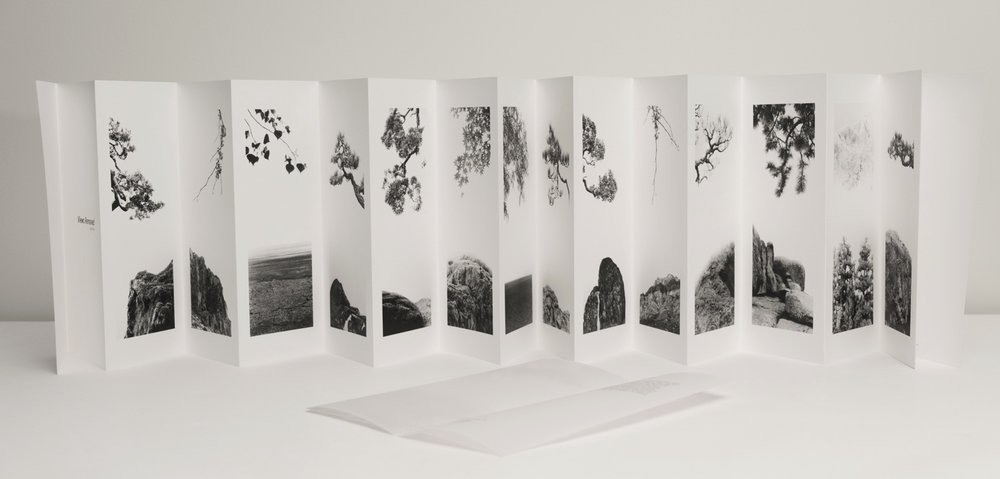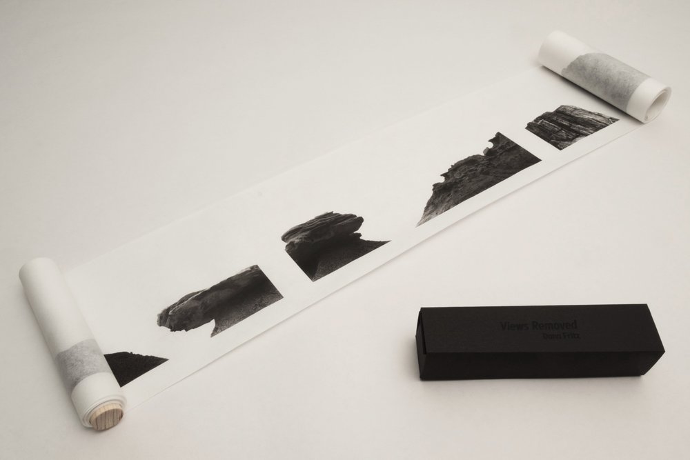 © Dana Fritz, 'Views Removed'. Signed, limited edition handscroll with ten 4"x10" images, title, and short text describing the work printed on Murakumo Kozo paper. This self-published artist's book bound by the artist brings the horizontal images from 'Views Removed' into an handscroll format that encourages the viewer to choose the landscape view at arm's length, even combining multiple images into new landscapes.