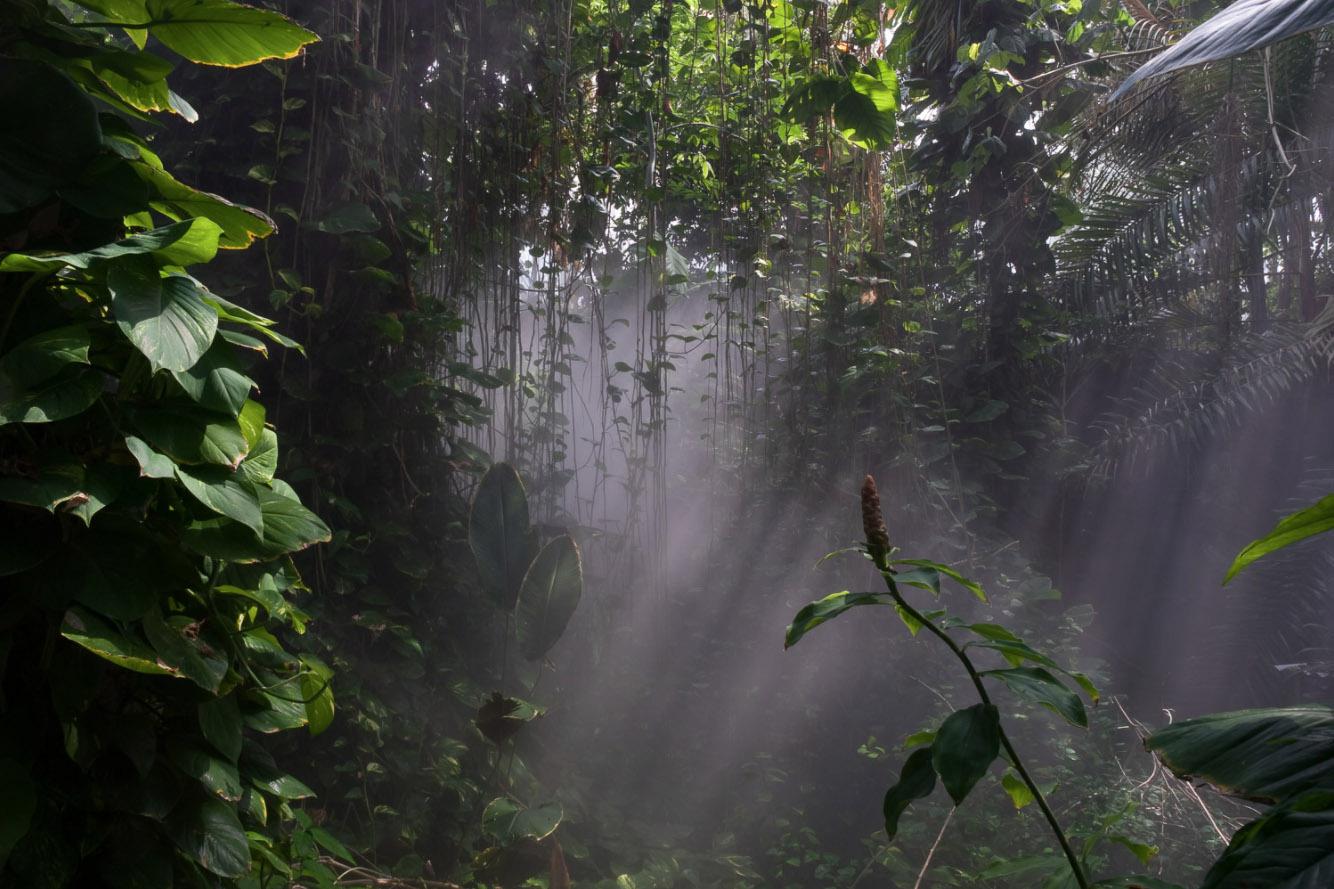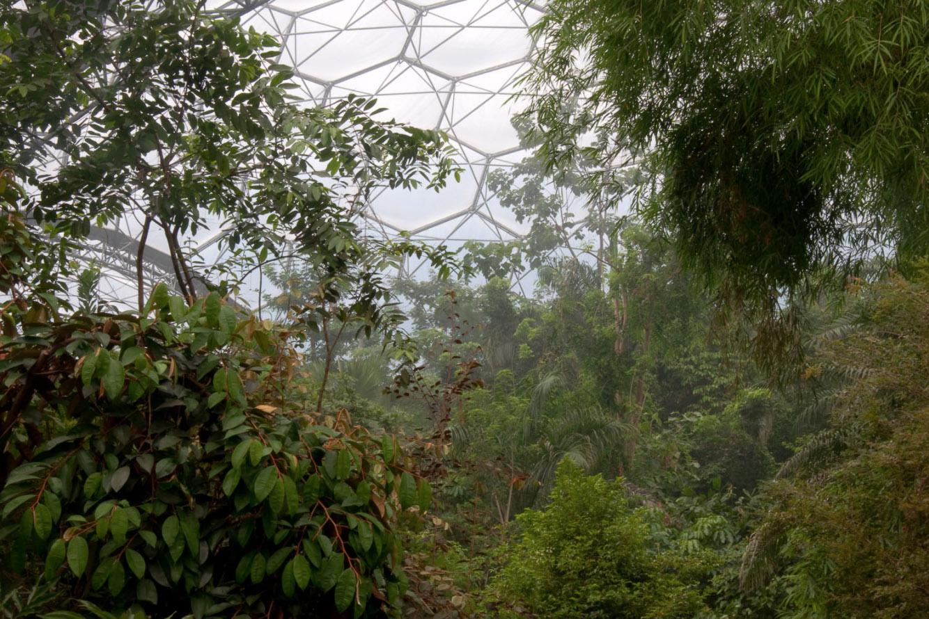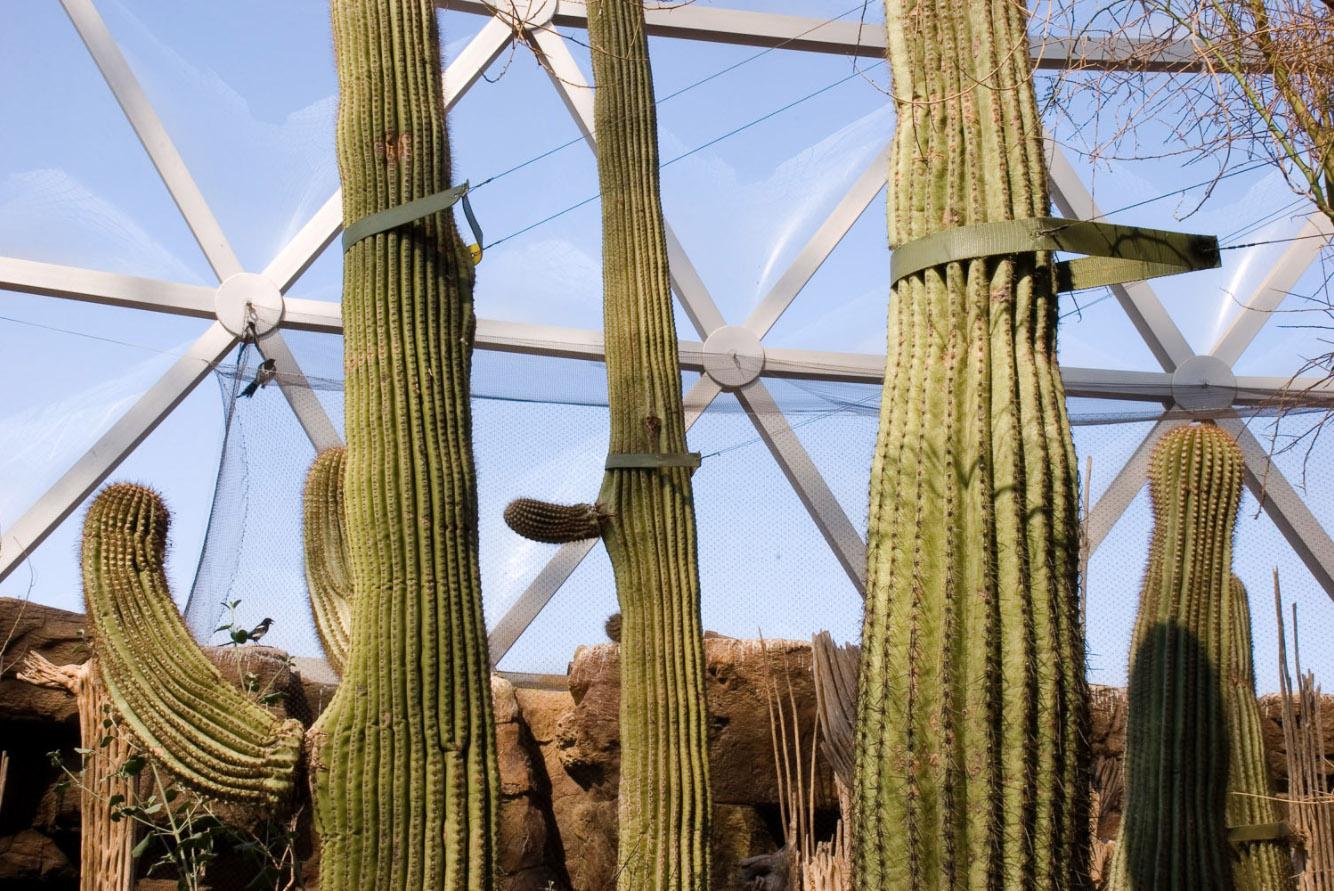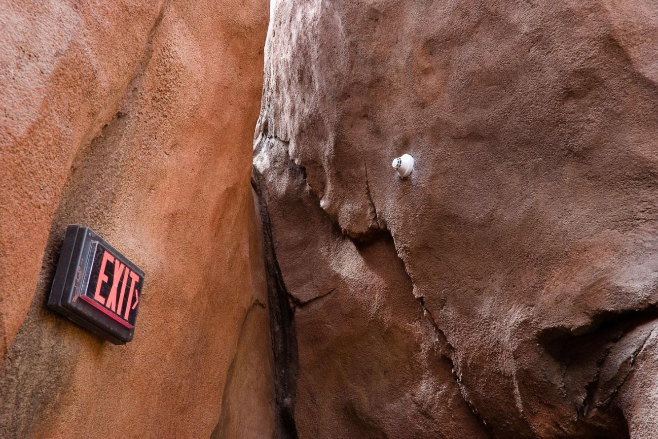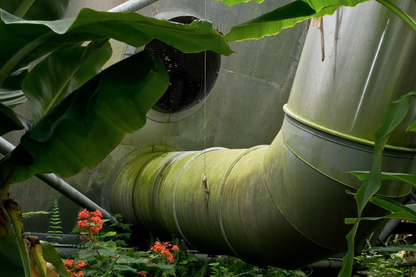 My opinion about the human-nature relationship has evolved significantly because of the Terraria Gigantica project. At first, I saw them as more oppositional but now believe it is too late for the idea of defining nature by our absence. As Bill McKibben, William Cronon and Michiel Schwartz point out (in very different approaches,) we have fundamentally altered the planet and using “wilderness” as the reference point for nature is not useful to move forward. The giant terrariums serve as complex symbols for where we are now and I have grown to appreciate them for their inherent strangeness as well as their scientific and educational value. While Biosphere 2 had a somewhat dubious original mission, all these sites are now focused on education and in some way on research. I do still wonder if visits to them supplant time spent out of doors for some people, especially children. (In Last Child in the Woods, Richard Louv writes about the detrimental effects of children not playing outside.) However, because of their enormous scale and density of plants, these sites produce a sense of wonder in visitors that may lead to future interest in the natural world. Being in these vivaria, one feels small yet awestruck (and perhaps even empowered) that humans can build and maintain such a place. I am fascinated by the structural elements of the architecture and landscape design and the combination of live plants and often indistinguishable artificial (but mimetic) elements such as plants and rocks that make up the exhibits. Within all of this structure, seemingly unplanned natural systems arise such as when a bird from outside builds a nest or when green slime develops on walls. All of the sites I photograph are educating visitors about our altered world and the important role we all play in it. While I applaud these efforts, I have to wonder if most visitors consider the philosophical implications of such large scale displacement and elaborate simulation. These are some of the many issues that I consider when making photographs.