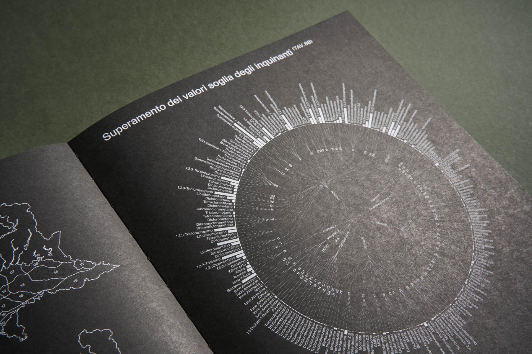The book is intended as a guide to uncover a geological layer unjustly left as a polluted legacy to future generations. Under the ground and their feet, a deliver soil impregnated with metals, poisons, toxic and harmful substances. Plants and fruits that will feed animals and humans will grow on this soil. This photographic and territorial investigation manifests a method of working and disseminating knowledge, a good practice, a benchmark for those who wish to apply the expressive potential of the image in safeguarding the common good, the earth, and life.