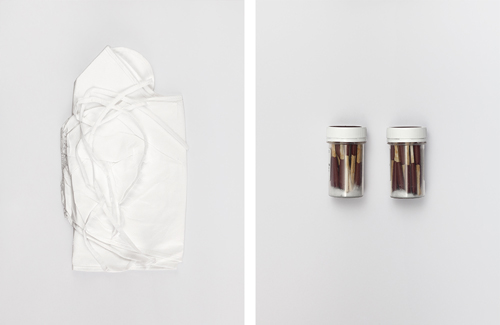 © Lise Straatsma from the series 'The Alpha Strategy'. At left: Microgard Overall 2000 TS Plus. Designed to make water vapor (perspiration) escape from the suit easily and to resist the saturation by liquid chemicals. Filters particles up to 0.01 micron in size to 100%. The low fluff content reduces risk of contamination in critical environments. Antistatic and wide integrated elastics at the wrists, ankles, hood and chin. This helps to reduce the risk of fluff and minimize contamination. At right: Water proof matches in air tight container. Designed to make water vapor (perspiration) escape from the suit easily and to resist the saturation by liquid chemicals. Filters particles up to 0.01 micron in size to 100%. The low fluff content reduces risk of contamination in critical environments. Antistatic and wide integrated elastics at the wrists, ankles, hood and chin. This helps to reduce the risk of fluff and minimize contamination.