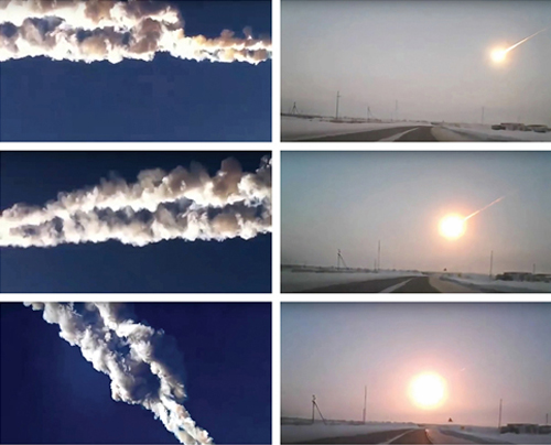 © Lise Straatsma from the series 'The Alpha Strategy'. Meteor hits Russia on February 15th, 2013 (Screenshots of mobile recordings) Description: The light from the meteor was brighter than the Sun, up to 100 km away. It was observed over a wide area of the region and in neighbouring republics. Some eyewitnesses also felt intense heat from the fireball. Image source: Screenshots of mobile recordings from YouTube