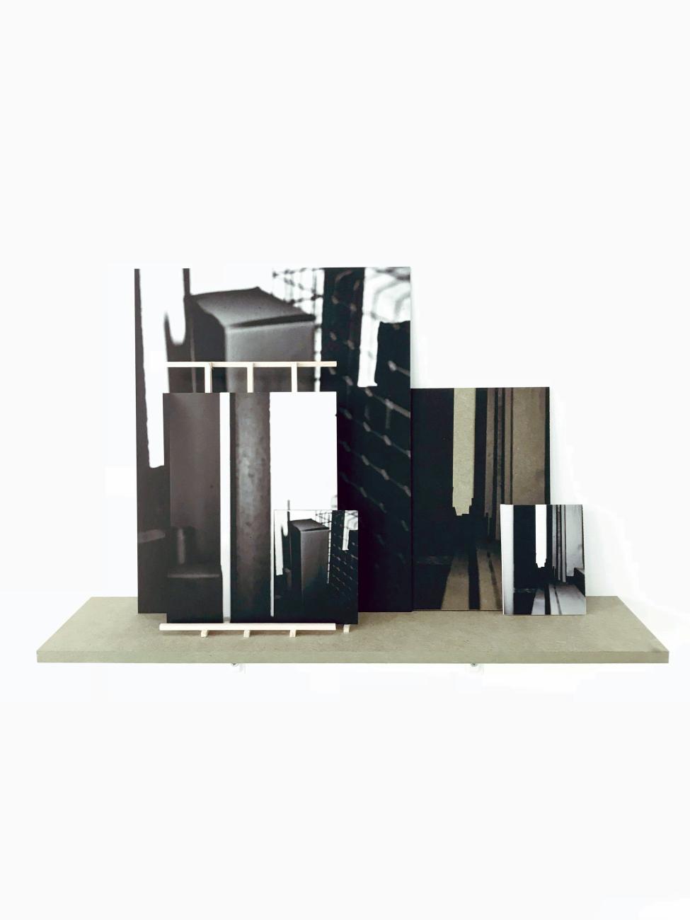 Proot shows, with the exhibition In Transit, a temporary creation, volatile fragments of memories put ready and packed to move. This combination of different media, the sharp target model, the endless projection through this maze and the photo work function as fragmentary recordings of caught dreams. During this "temporary" in transit position new universes arise that are constantly subject to change. As humans we are 'always on the move', Proot says. And with this 'ongoing' project he stimulates the spectators to roam freely through the space, to stop before a track, to watch the skyline or even having a break and experiencing a marvelous moment.