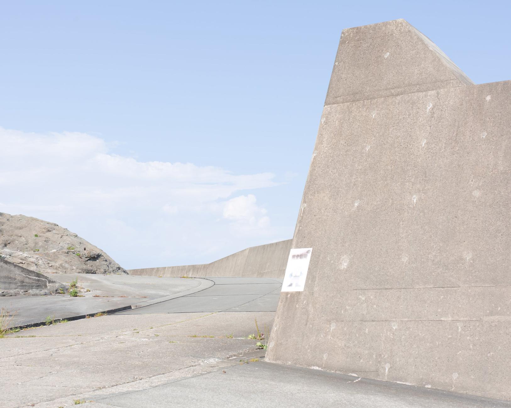 Looking at Pengkuei Ben Huang’s photographs, I can’t help but think once again of the myth of Narcissus, the proud and superb youth who gazes at his own vanity reflected in the water, and how science has already played a role in dismantling this anthropological narcissism. Freud offers a concise lesson on this topic in his essay "A Difficulty in the Path of Psychoanalysis (1917)." First, he recalls Copernicus’ contribution in overturning the Ptolemaic system, turning Earth into a mere speck of dust in the universe. The first humiliation inflicted upon humanity was cosmological. This was followed by Darwin’s, or the biological one, which placed human beings back within the animal kingdom, in an evolutionary groove—far from any notion of alien supremacy. But the one that concerns us most as we view these landscape cross-sections of the wall under construction in the Tohoku region of Japan, following the devastating 2011 tsunami, is that of the consciousnessl and the fact that we are not masters in our own house, as there is an unconscious that inhabits us. Freud compares this "foreign" unconscious to the cold, icy sea of the North, threatening the shores of the ego, against which we build barriers to defend ourselves from its constant assault.