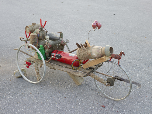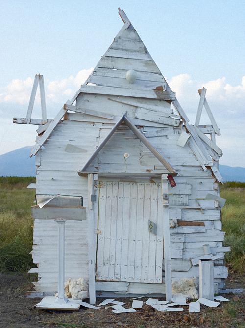 The photographer’s latest body of work is 'Gold Rush'. The work is a metaphorical journey based on a real life event. Petros comes from a village that will soon become a pipeline worksite. «The villagers agreed to give land to the gas company, as did my father» says. «I witnessed my father shaking hands with the company and signing a contract. Peach trees will be replaced by a massive pipeline». Petros explores and describes in his own particular way the transformation of the village and the surrounding atmosphere. «I’m trying to recreate the feeling of a colony and the process of a small village becoming a boom town. The desire of making money fast and the big issues that upset the village’s normality», Petros reveals. «In the short term economic growth, but in the long run there will be a disaster zone or maybe I’m just imagining some fantasies». It is these kinds of fantasies that provide the spark for Petros’ works. It all starts with some kind of visual stimulation. The set up, first on paper, begins and then the construction of the installations follows. This is the lonely part of the process. During this construction phase Petros is rather withdrawn and distant, always looking to hide his work and protect it from curious and indiscrete eyes. 'Gold Rush' is a work in progress, always growing until the creator feels satisfied and complete with the images he has produced. Petros is really concentrated on the body of work he is working on and doesn’t seem to enjoy mixing. Besides, his constructions take so much time, energy and thought that we cannot but wonder how anyone could think of anything different during this period of creation. He does have ideas in mind, but he prefers to write them down in his little notebook and then eventually get to it.