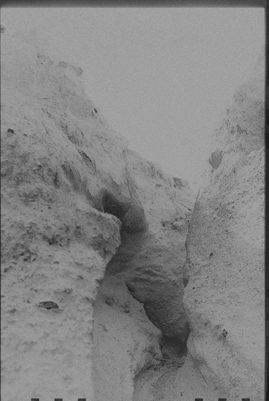 With "No Code" Stefano Parrini takes us in a dry landscape, in which we must learn to stay, beyond any possible understanding. Understanding also means welcoming, embracing, making one's own. Thus, as aliens, these Martian landscapes emerge in our minds to be encoded as something other than us. The caves' depth becomes a gorge into which to disappear, a place of mystery, in opposition to the idea of possible refuge. The stone walls are monumental obstacles that have been lying there for millennia, eternal compared to the short human life.