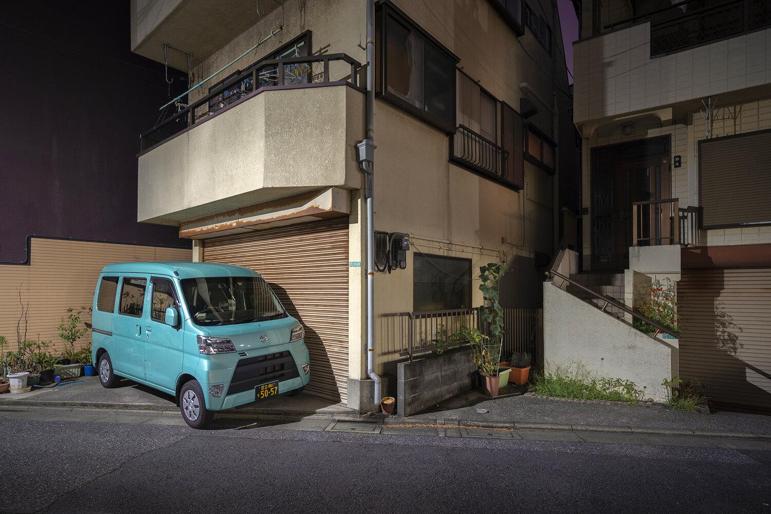 © Alessandro Zanoni from the series "Kuruma". Tokyo, Edogawa ward, kei car parked in front of an independent home.